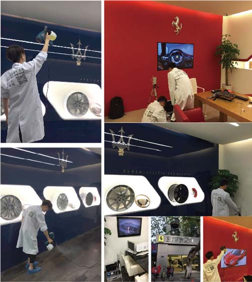 治理情況:“綠贊空氣管家”分別對法拉利和瑪莎拉蒂展廳進行了室內空氣檢測,甲醛等污染氣體有存在不同程度的超標??諝庵卫韺T對展示廳內部進行了污染源的排查,并全方位運用公司的專利產(chǎn)品納米光觸媒進行凈化治理,徹底清除了室內甲醛。