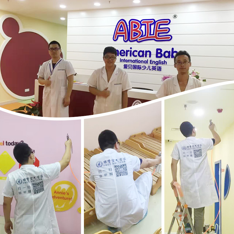 客戶需求:愛貝國際少兒英語是新裝修的,室內(nèi)存在裝修異味,校方考慮到孩子們的健康問題,讓孩子們擁有一個良好的學(xué)習(xí)環(huán)境,特地邀請我們創(chuàng)綠家的工程師們?nèi)プ隹諝鈨艋卫矸?wù)。