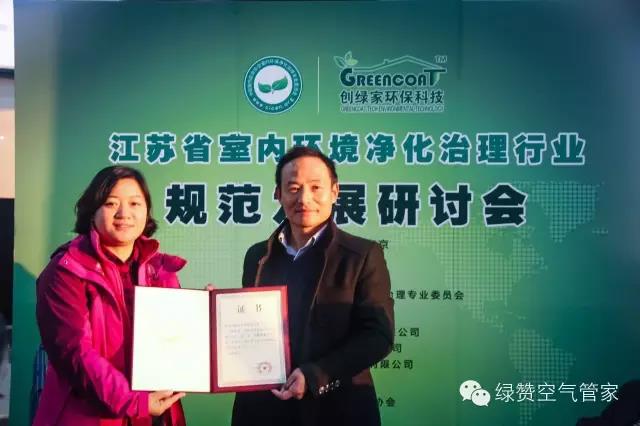 最后,凈化委向創(chuàng)綠家環(huán)??萍碱C發(fā)了“蓓蕾健康空氣行動(dòng)”江蘇省執(zhí)行單位證書(shū)。
