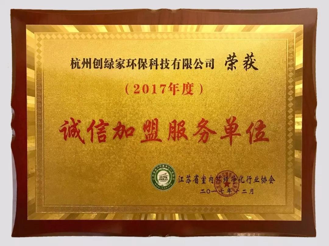 03創(chuàng)綠家環(huán)保榮獲“誠信加盟服務單位”等多項榮譽
