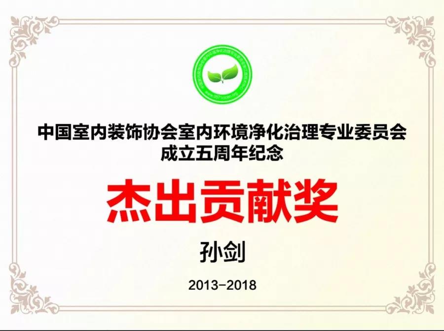 2018年12月19日,中國室內環(huán)境凈化治理行業(yè)第五屆技術創(chuàng)新分享會在北京新聞大廈長安發(fā)布廳舉行。創(chuàng)綠家環(huán)??偛脤O劍榮獲凈化委成立5周年杰出貢獻獎和青年菁英獎。