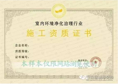 提供室內(nèi)環(huán)境治理服務(wù)的公司需要具有施工資質(zhì)。國內(nèi)承擔(dān)室內(nèi)環(huán)境凈化治理工程的企業(yè)按其注冊資本,管理和技術(shù)人員狀況,以及凈化治理工程業(yè)績等條件申請相應(yīng)資質(zhì)等級,分為甲、乙、丙三級。資質(zhì)由中國室內(nèi)裝飾協(xié)會室內(nèi)環(huán)境凈化治理專業(yè)委員會全國統(tǒng)一頒發(fā)。
