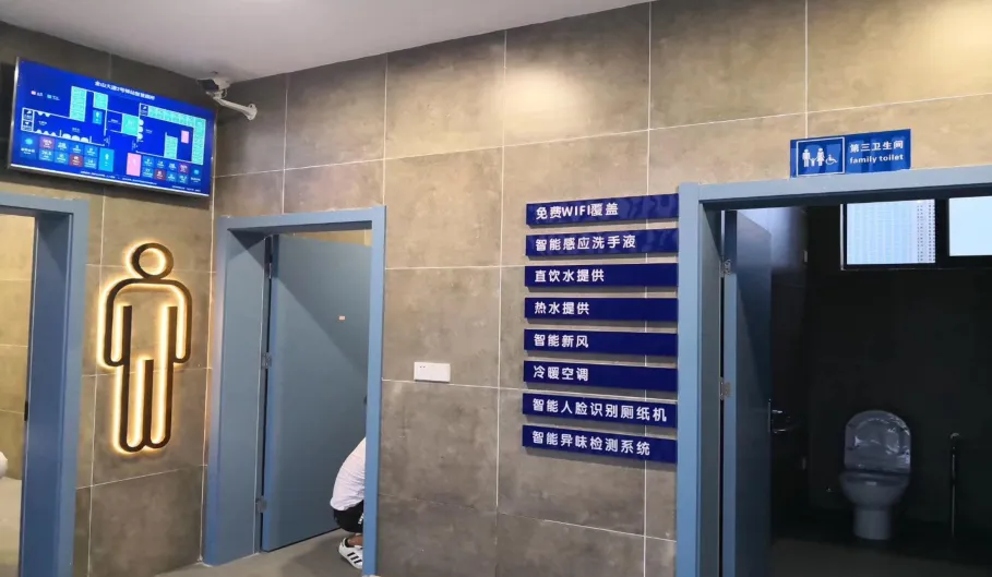 其次是智能顯示大屏。通過(guò)智能顯示大屏,用戶(hù)可以迅速了解到廁所的使用情況,包括未使用、待清潔、正使用等狀態(tài),減少用戶(hù)排隊(duì)等待的時(shí)間,提高使用效率。大屏還可以發(fā)布公告、播放宣傳片等,提供更多的信息和便利。
